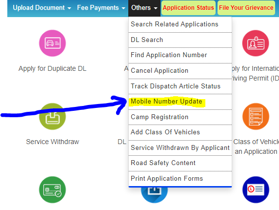 Select online services to Apply for Transfer of Ownership, Change of Address, Hypothecation [Addition/Continuation/Termination], Duplicate RC)